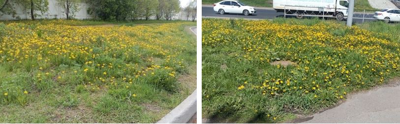 В настоящее время одуванчик лекарственный находится в фазе цветения, необходимо провести скашивание сорняка для снижения его распространения.