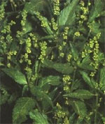 Однолетнее растение 20-40 см высотой со стеблем, разветвленным от основания, голым. Листья супротивные, яйцевидно-ланцетные, кверху заостренные, с округлым, слегка сердцевидным или широко клиновидным основанием, тонкие, по краю слегка реснитчатые, городчато-зубчатые. Тычиночные цветки собраны в клубочки, расположенные в верхней части оси в виде прерванного колоса, 3-10 см длиной, чашечка 3-раздельная, чашелистиков 3, они яйцевидные, острые. Пестичные цветки в пазухах листьев по 2-3 на коротких цветоножках. Плод несколько сетчатый, покрыт жесткими волосками. Цветение в июне.