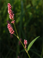 Однолетнее травянистое растение со стержневым корнем. Стебель прямой, слабоветвистый, в нижней части слегка приподнимающийся, 20—50 см высотой; листья 3—10 см длиной, ланцетные, почти сидячие, голые, сверху с бурыми пятнами или без них. Сросшиеся в трубку прилистники образуют раструбы, плотно прилегающие к стеблю, прижатоволосистые, по верхнему краю с длинными ресничками. Кисти соцветий конечные, плотные, толстоватые, 2—3 см длиной; околоцветник пятичлен-ный, простой, венчиковидный, розовый, реже беловатый без железок; тычинок шесть, пестик один с верхней, одногнездной завязью и 2—3 столбиками. Плоды — яйцевидные орешки, с обеих сторон плосковыпуклые или почти трехгранные, черные, лоснящиеся, заключенные в остающийся околоцветник. Цветет с июля до осени.