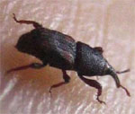 Жук из семейства долгоносиков. Распространен в зернохранилищах очень широко. Повреждает при хранении зерно пшеницы, ржи, риса, ячменя и кукурузы.